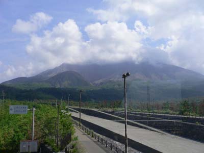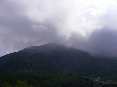 頂上は雲がかかっているように見えるが、これは山から出てきた煙。