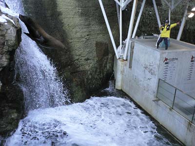 アトラクションが始まる時間になると、トドは自ら岩の上に登り、ジャンプ。